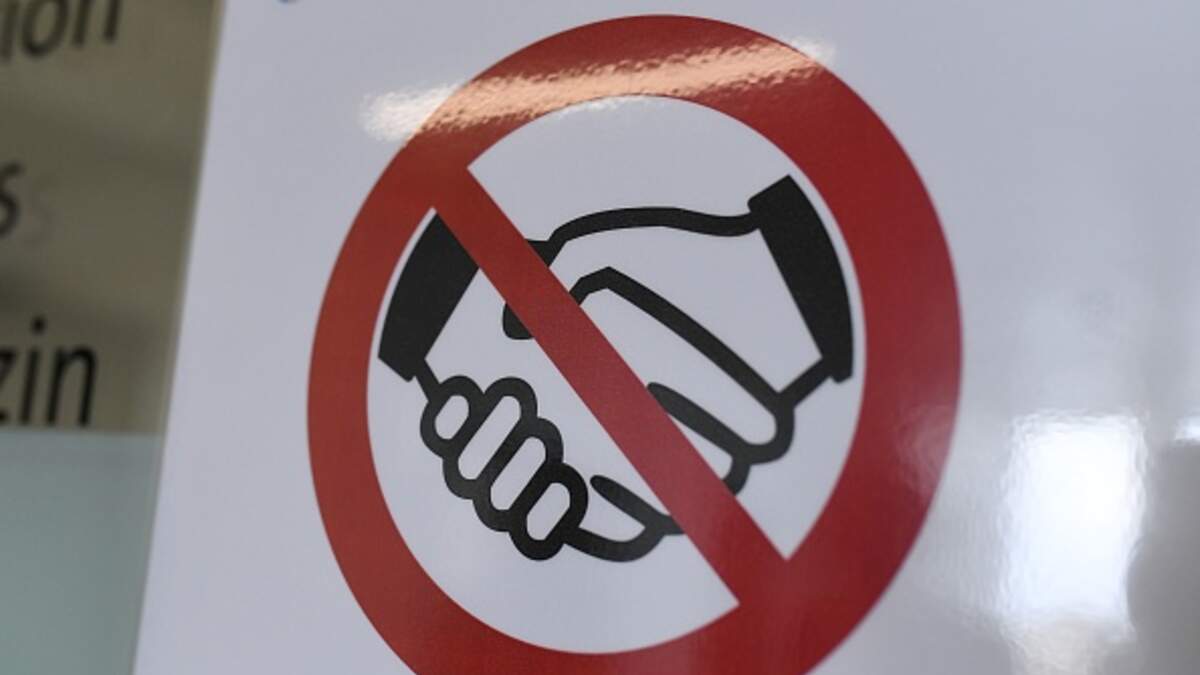 Greeting people with a handshake or hug is very automatic for many people, and declining them may be awkward but has to be done for a while.
