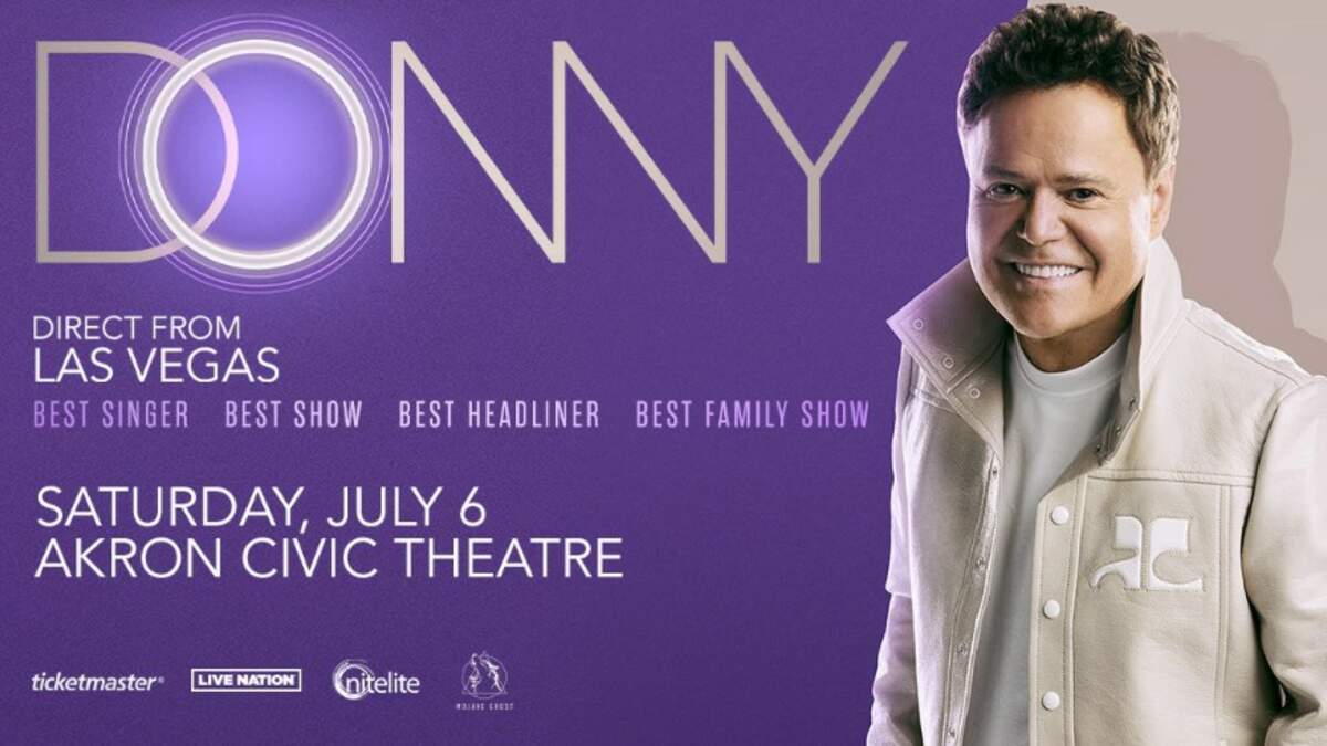 Legendary entertainer and music icon, Donny Osmond – Direct From Vegas comes to Akron Civic Theater on Saturday, July 6 at 7:30 PM! Fans will be treated to a full Broadway style production of his classic Disney hit from Mulan, "I'll Make A Man Out Of You" and more others! The show includes an interactive segment where anyone in the audience can request any song he's ever recorded. For complete details and to purchase your tickets, click HERE!