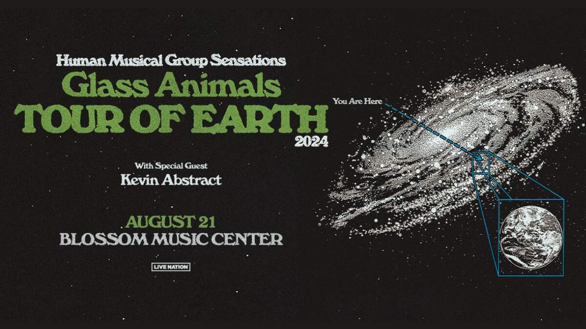 Glass Animals bring their Tour of Earth 2024 tour to Blossom Music Center on Wednesday, August 21 with special guest: Kevin Abstract! For complete show details and to purchase your tickets, click HERE starting Thursday, April 11 at 10:00 AM! Listen to Glass Animals on iHeartRadio!