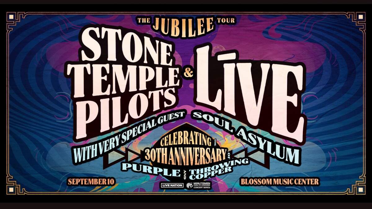 Stone Temple Pilots & +LIVE+ bring their 'The Jubilee Tour ' to Blossom Music Center on Tuesday, September 10 at 7:00 PM with special guest: Soul Asylum! Hear all your favorite STP hits like: " The Interstate Love Song", "Plush", "Creep" and many more! For complete show details and to purchase your tickets, click HERE starting Friday, March 22 at 10:00 AM!