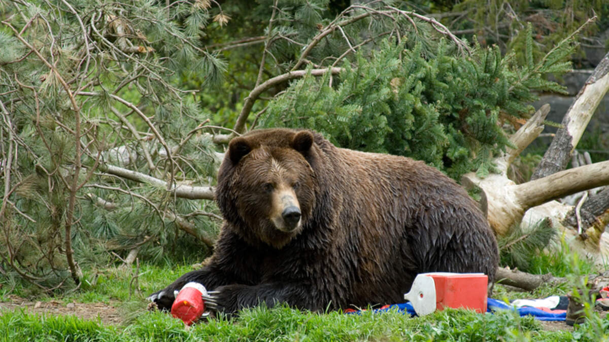 A black bear in Alpine, California is caught on camera just sitting at a picnic table and enjoying a snack. photo: getty images