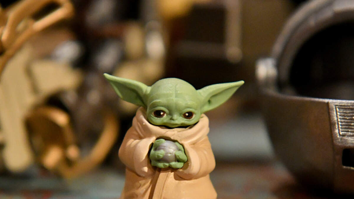 The two to three week old kitten adorably resembles Baby Yoda, with her enormous ears, round eyes and a little button nose.