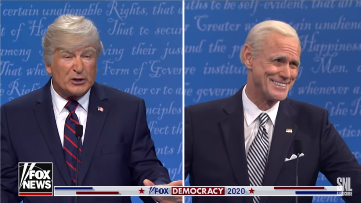 Saturday Night Live parodies the first presidential debate of 2020, with Jim Carey as Joe Biden, Alec Baldwin as Donald Trump, and Beck Bennett as Chris Wallace.