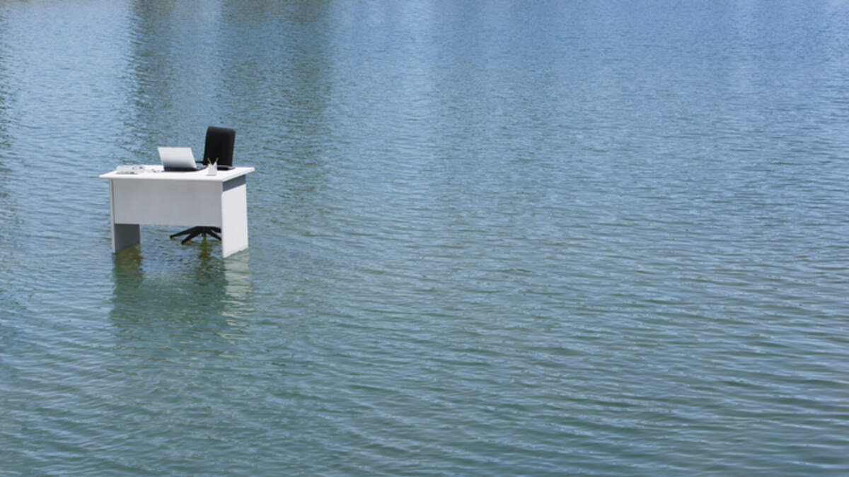 This man decided to adhere to social distancing protocols by setting his office up far away from the nearest person, in the middle of a lake. He set up a desk, water cooler, trash can, and more on a floating platform.