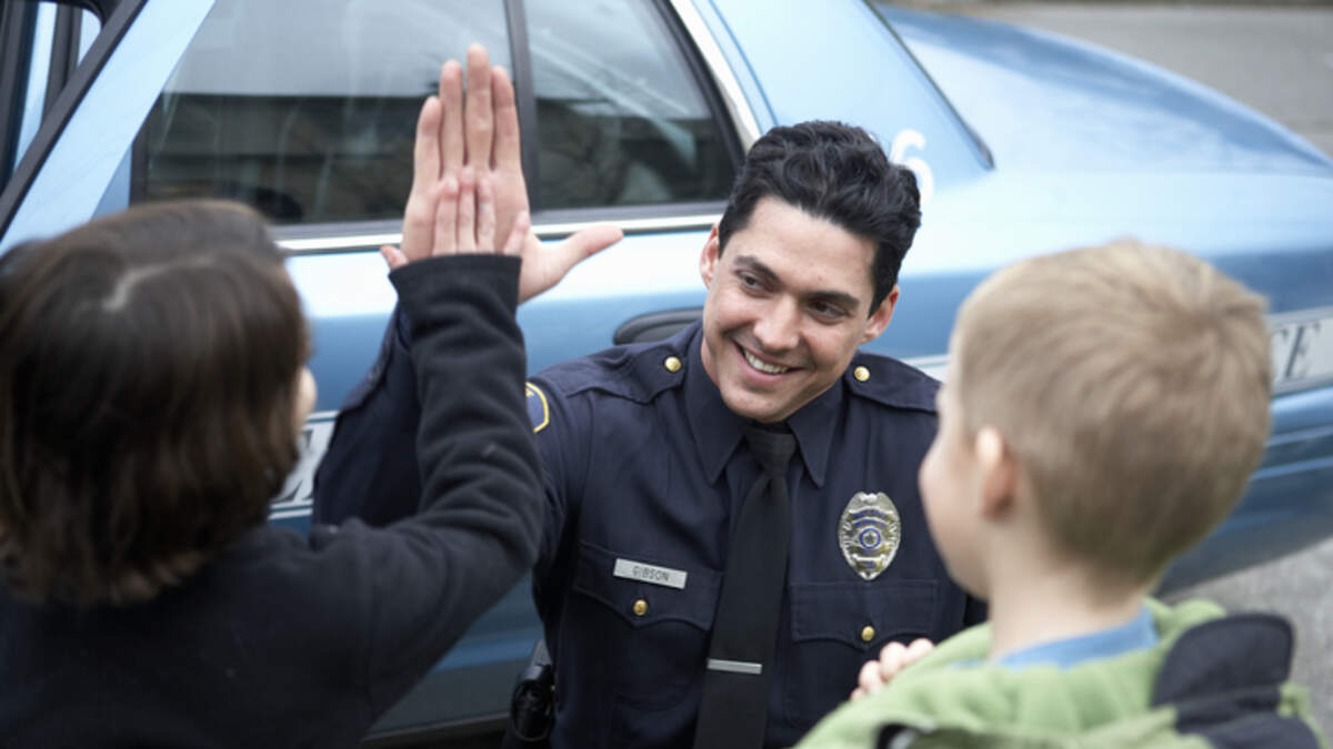 Christian is giving candy and toys to officers with the Phoenix Police Department.