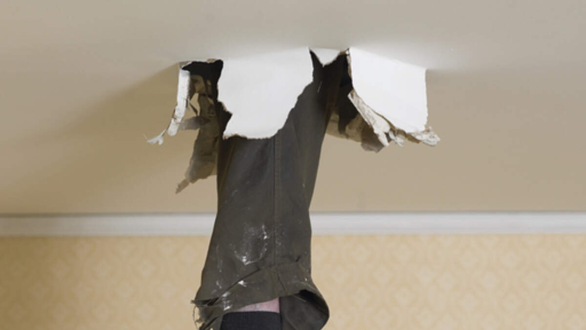 As they walked around the kitchen, she could be heard crawling above them. She fell through the ceiling into the waiting handcuffs of officers.