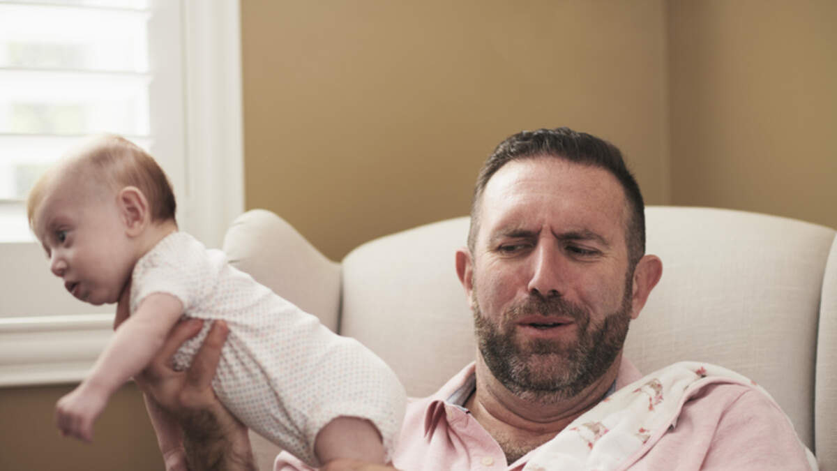 Poor Uncle Tony...can't get through a simple poopy diaper change without gagging. A lot. Photo: Getty image