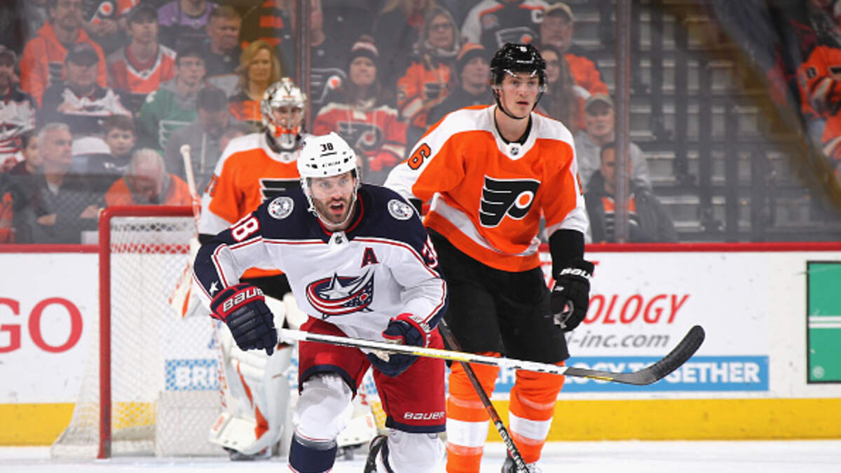 Nick Foligno and Oliver Bjorkstrand each had a goal and an assist for Columbus in the first period but two unanswered scores in the second by the Flyers tied it up.